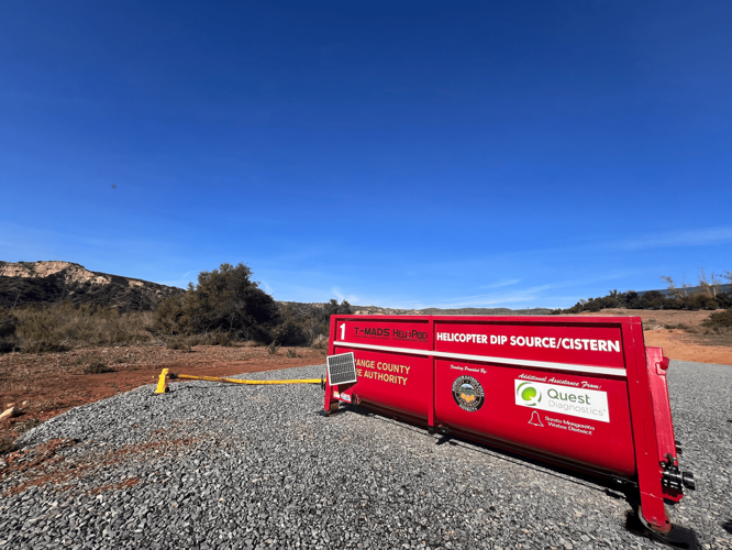 “It’s there at the Quest property; however, if needed, it can be moved to a location closer to a fire,” said Capt. Thanh Nguyen, OCFA public information officer. “That’s the whole point of this; it’s to reduce the turnaround time for helicopters to get water.”
