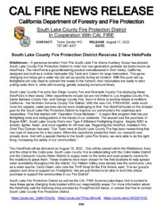 CAL FIRE Press Release below. South Lake County Fire receives generous donation to purchase 2 HeloPods®.